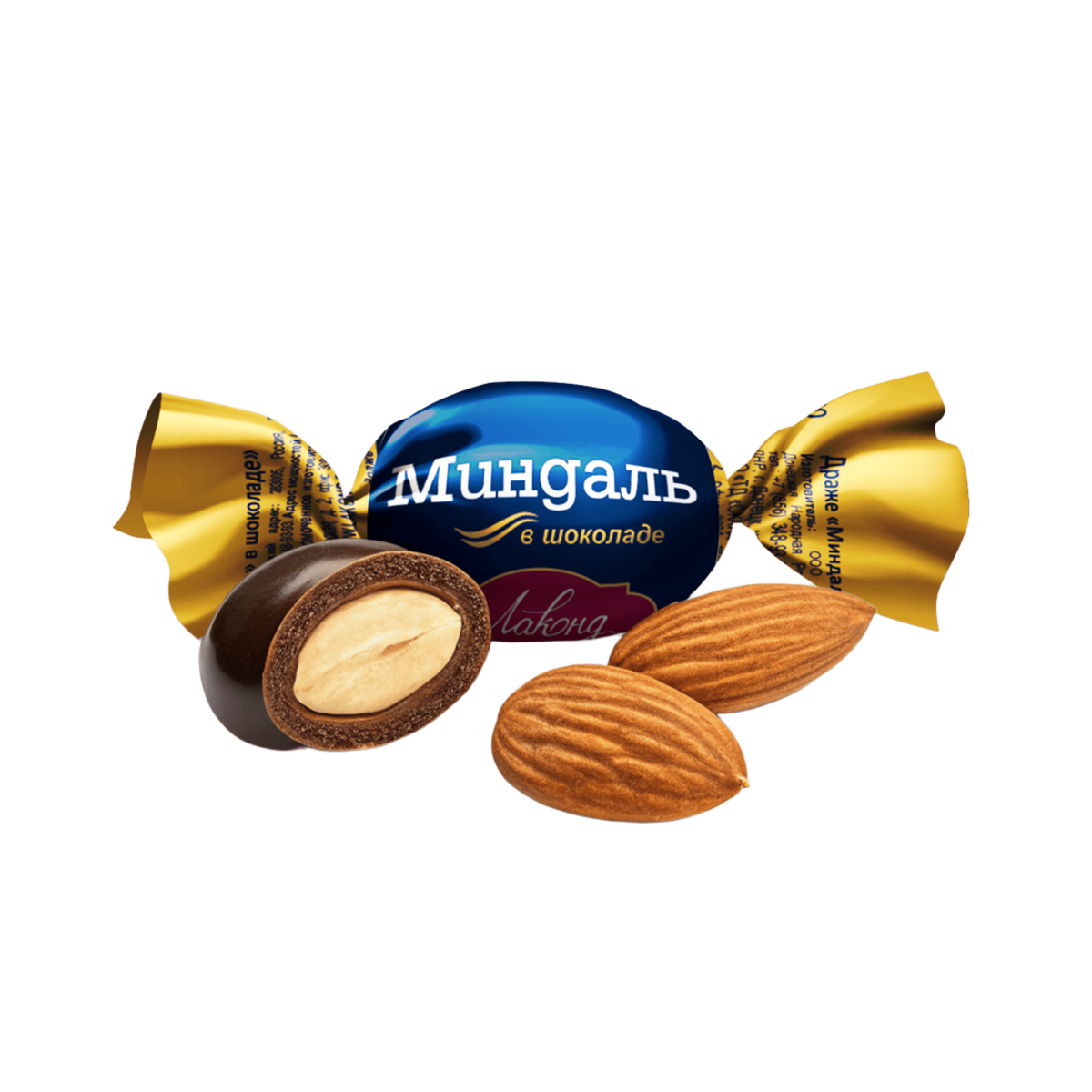 - A dragee made from premium almonds, coated with real dark chocolate.