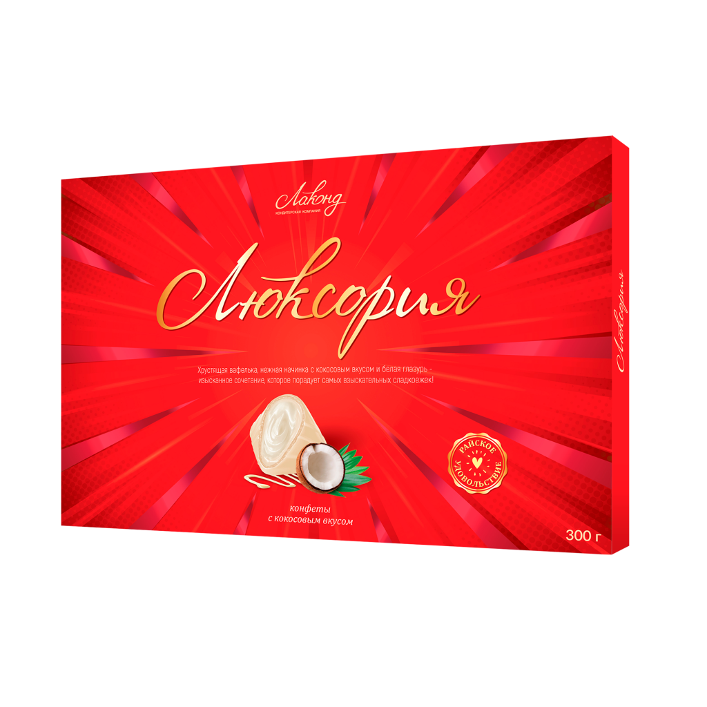 - Изысканные конфеты «Люксория» в элегантной премиальной коробке созданы для тех, кто ценит настоящее удовольствие.